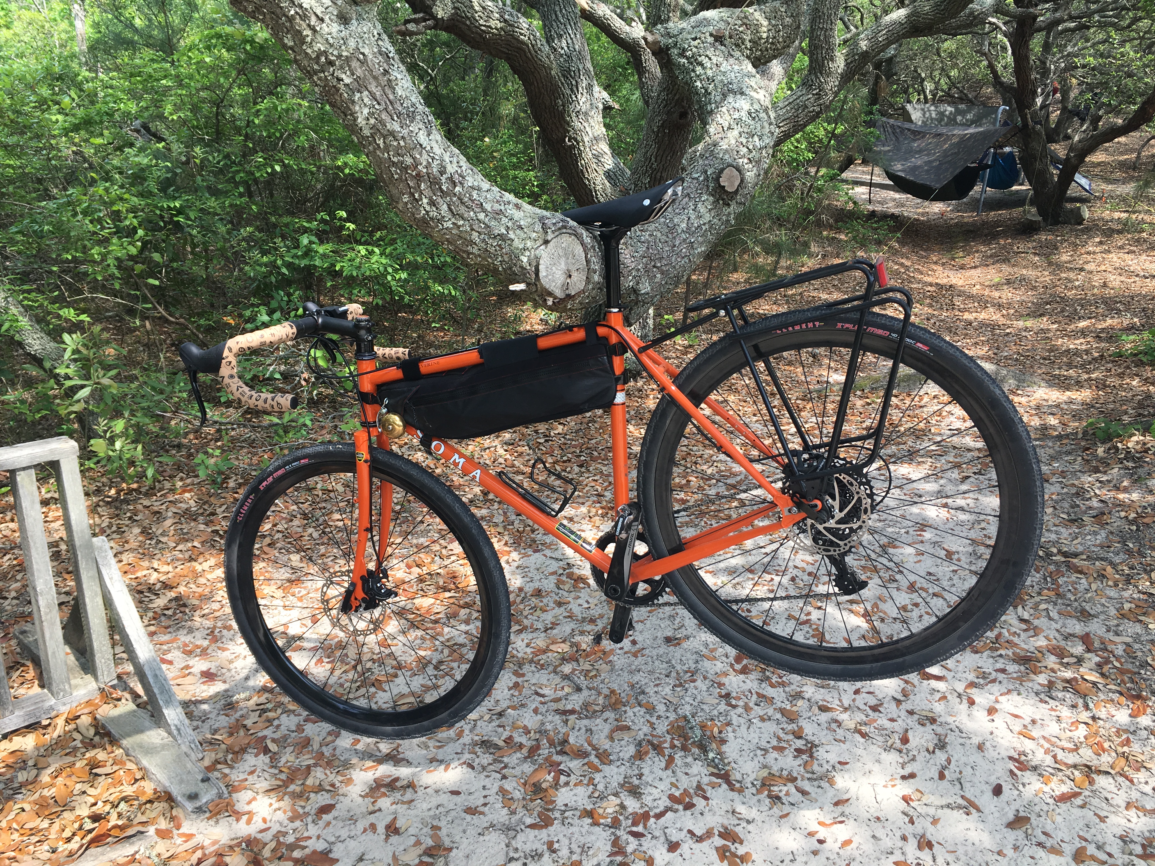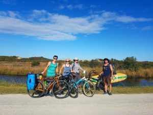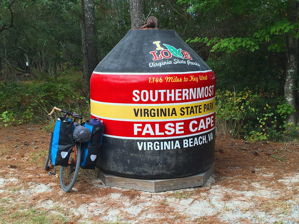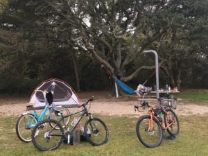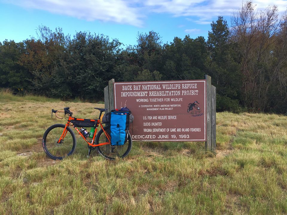 We loaded our bikes up on the car, drove to Virginia Beach and through Sandbridge, and parked our cars overnight at Little Island State Park. Then we loaded up all of our gear on the bikes, and rode in through Back Bay, past the False Cape visitor center, and on to campsite number 12. All together, the ride in (
